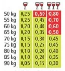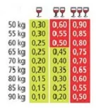 Equivalence des différents types d’alcool en fonction de leurs degrés :